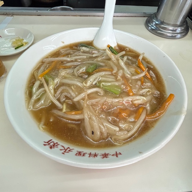 運ばれてきたどんぶりには、山盛りのもやしと野菜が鎮座。炒めた香ばしさとスープの優しい味わいが絶妙なバランス。