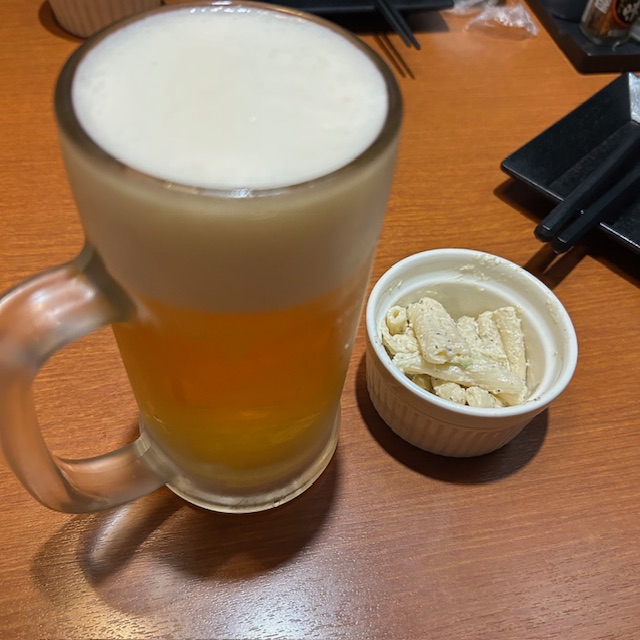 コショウがピリッと効いていて、生ビールとの相性抜群。居酒屋定番のスタート。