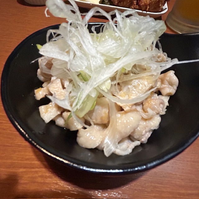 鶏皮自体は柔らかく、臭みもなし。ただしポン酢の酸味が弱く、全体のバランスが崩れている印象。