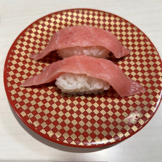 フェア商品らしく、通常よりも厚切りで存在感のある一貫。しっとりとした舌触りと鉄分の香りが広がるマグロ。値段以上の満足感。