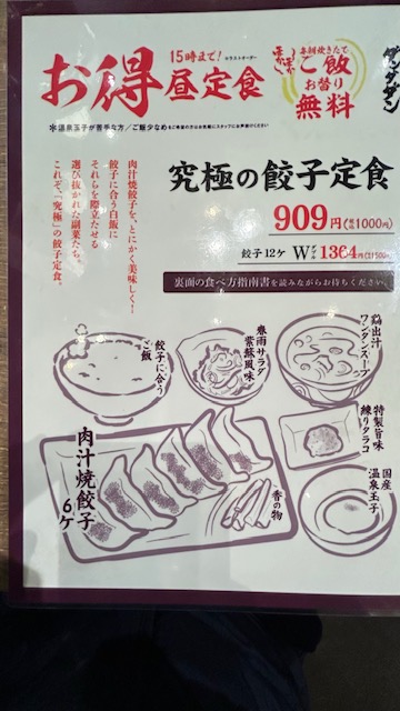 今回注文したのは「究極の餃子定食」909円。名前負けしない豪華な内容。
