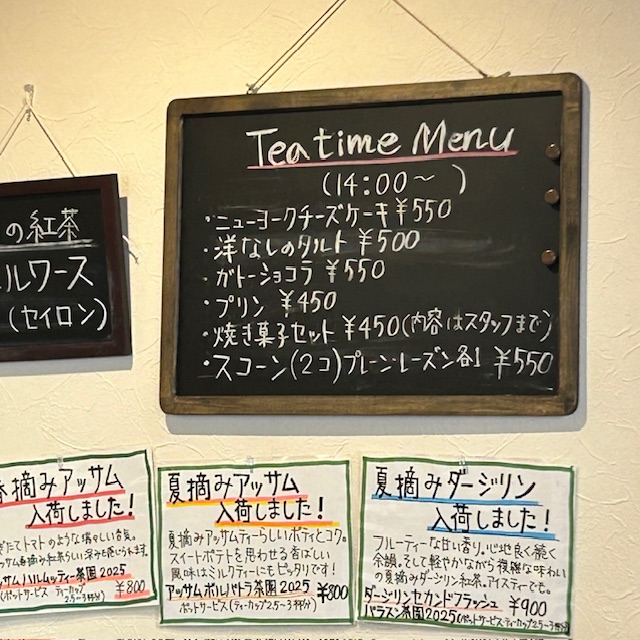 紅茶はアッサムなど種類豊富で、ポットで提供される本格派。
