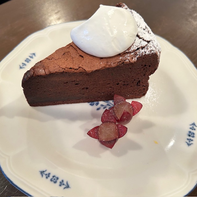 ガトーショコラはしっとり濃厚で、カカオの香りがしっかり立つ本格派。