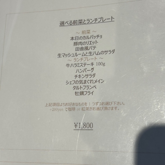 この日の注文は「選べる前菜ランチプレート」1800円。さらに+200円でコーヒーを付ける。