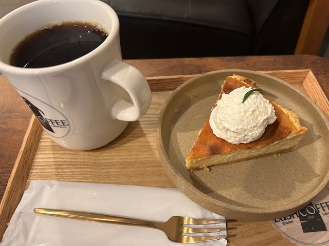 コーヒーの酸味とチーズケーキの濃厚さが互いを引き立てる組み合わせ。